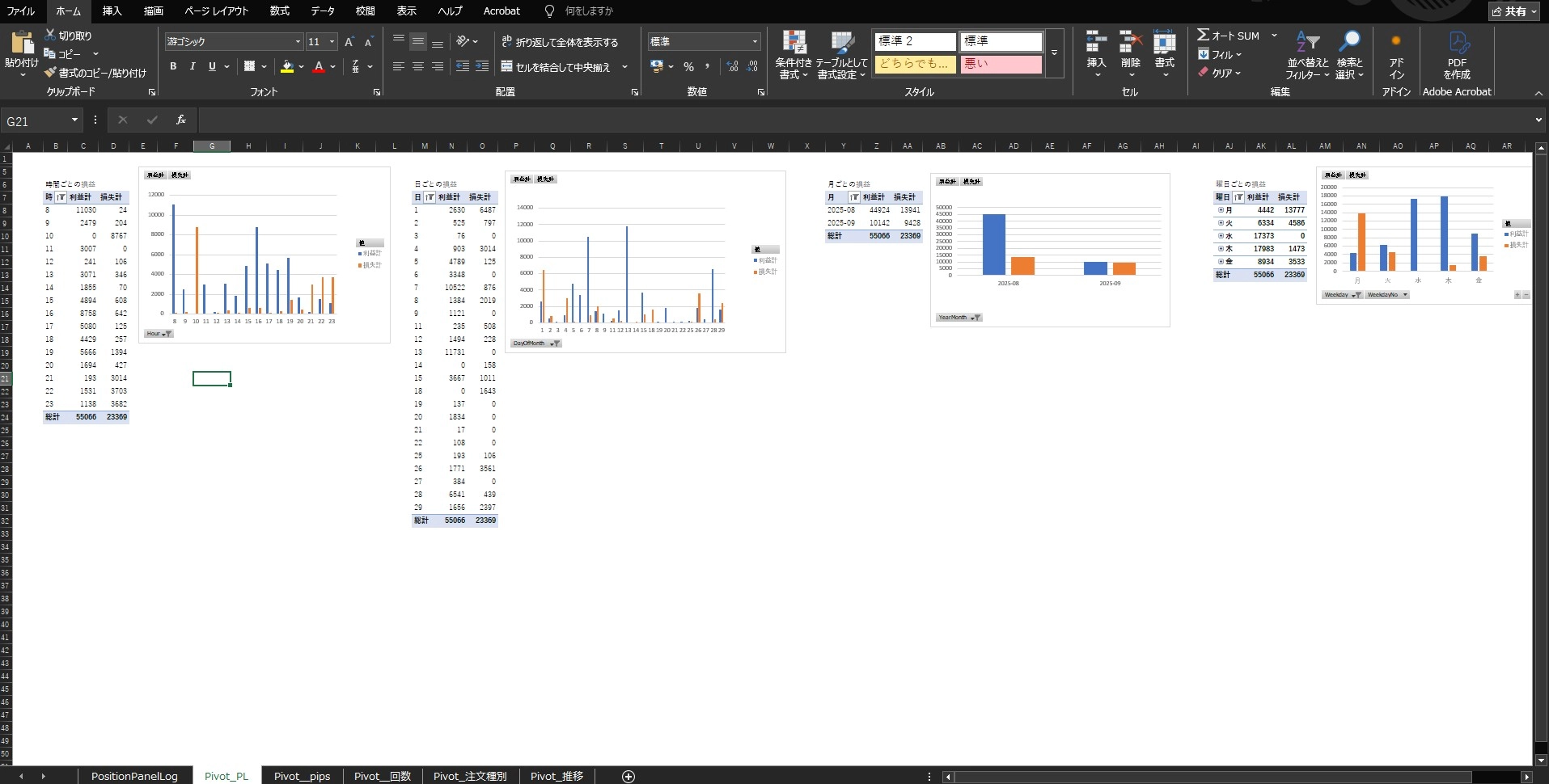 付属のExcelファイルで自動集計(統計的分析)&グラフ化(損益推移・pips推移など)