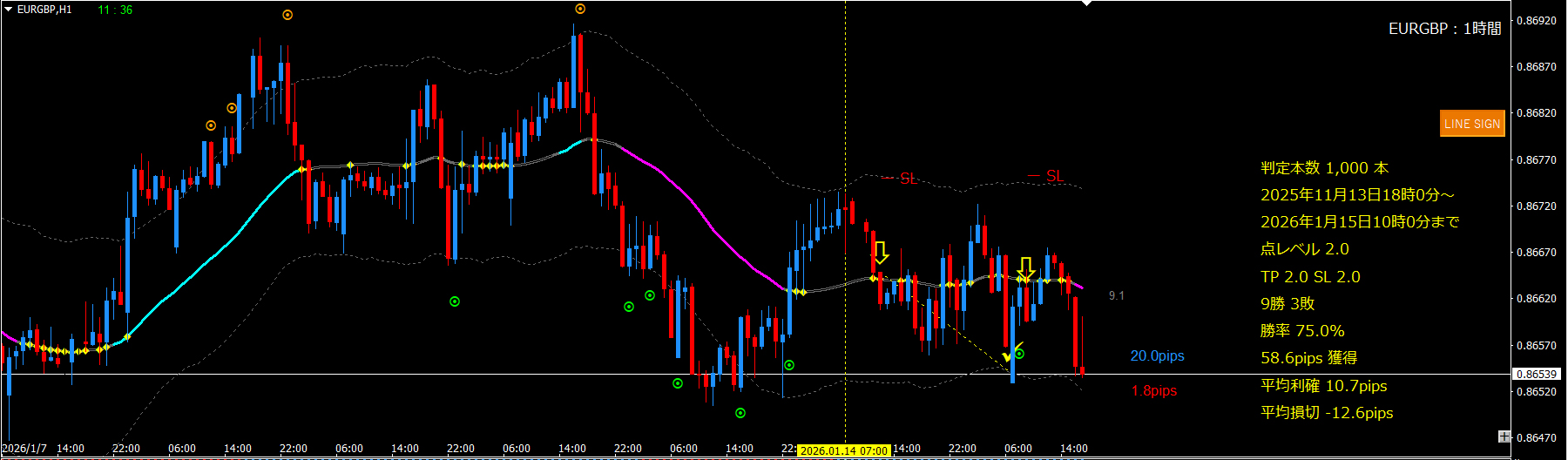 ■1時間足(左側:エントリー足)