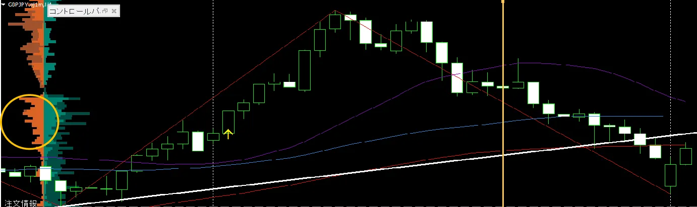 エントリー時点でのオーダーブックを確認します(Orderはエントリーの前も少し遡って確認するのがコツです)。