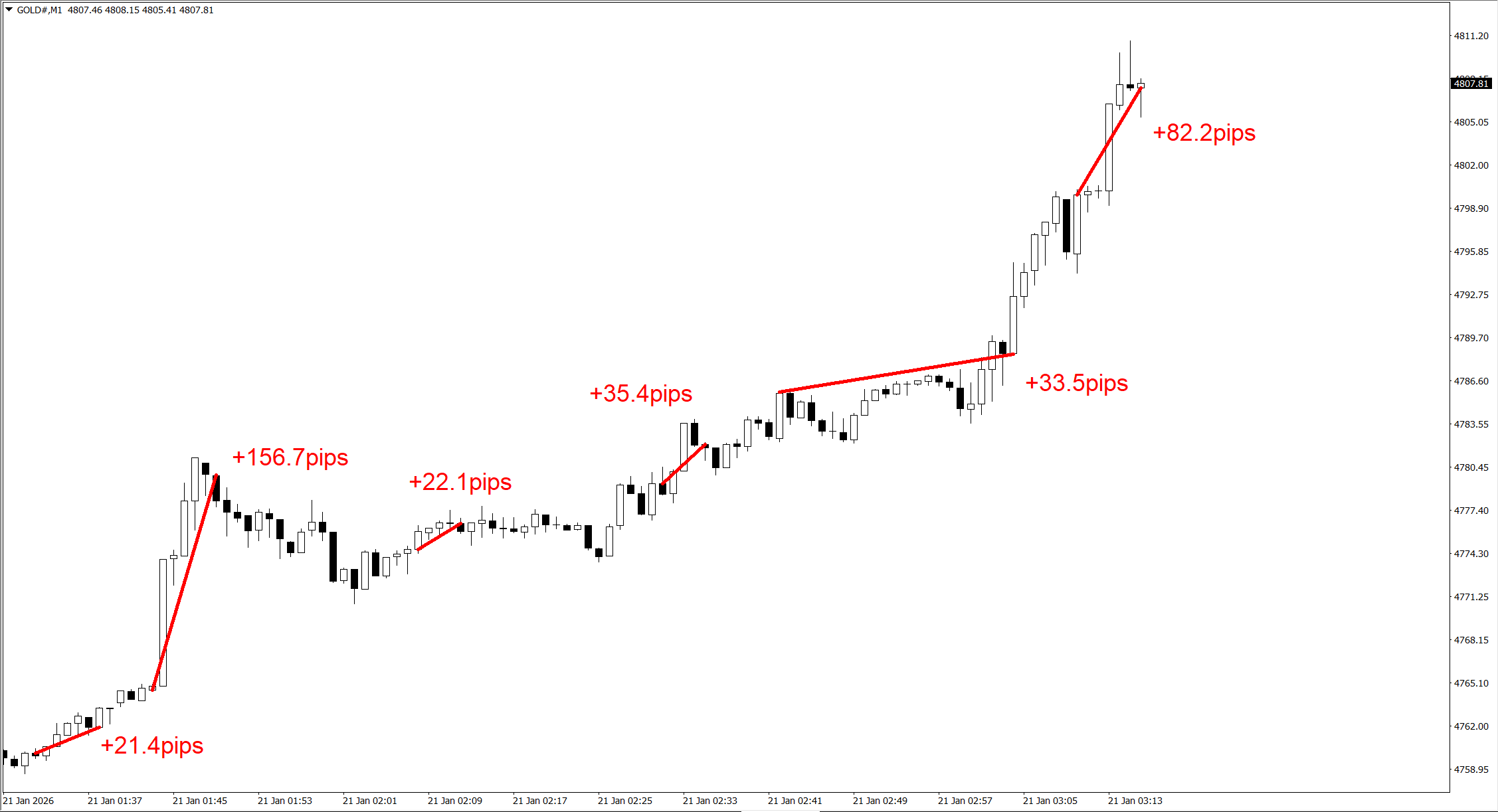 こちらは、なんと1本のローソク足だけで決済しています。