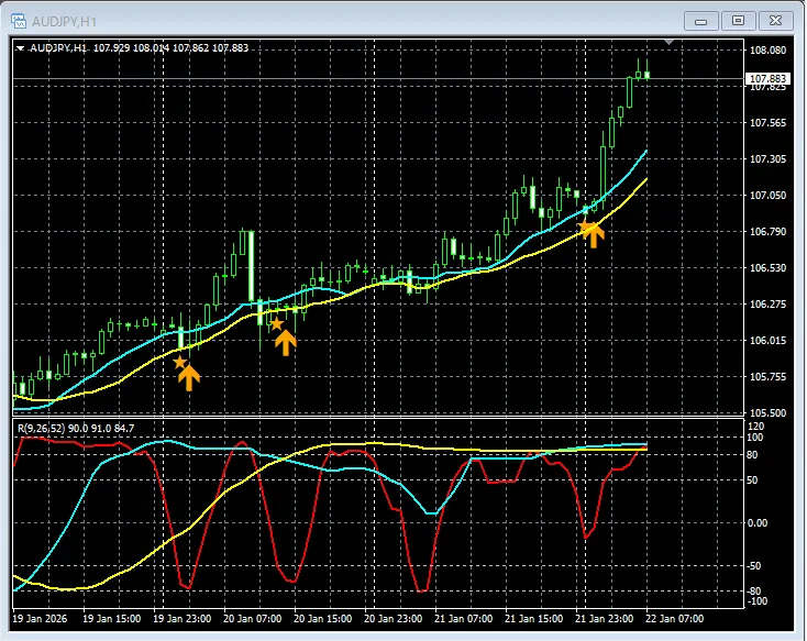【RCIを極めて移動平均線フィルターで勝つ!!】豪ドル円 AUDJPY 1時間足 mBDSRのサイン