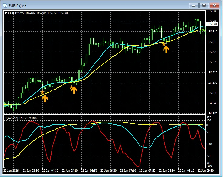 【RCIを極めて移動平均線フィルターで勝つ!!】ユーロ円 EURJPY 5分足 mBDSRのサイン