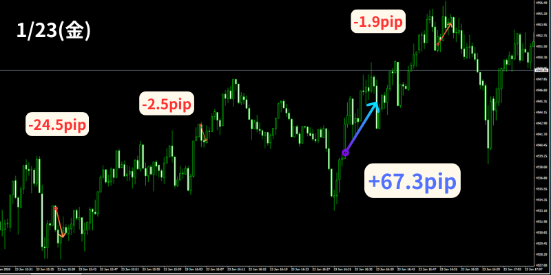 【1月23日】30秒足GOLD無裁量スキャルピング+【第2弾30秒足GOLDオートマチックFX】のトレード結果!