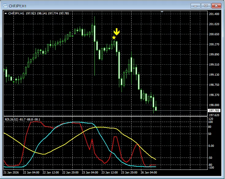 【RCIを極めて勝つ!!】スイスフラン円 CHFJPY 1時間足 mBDSRのサイン