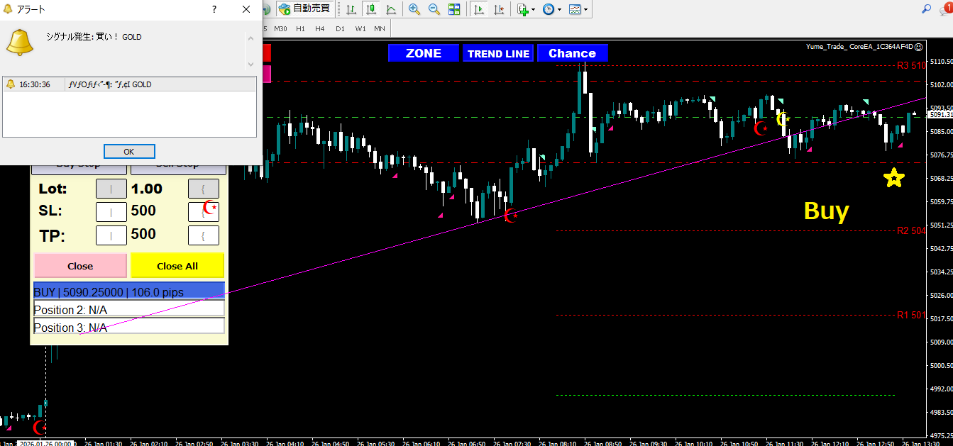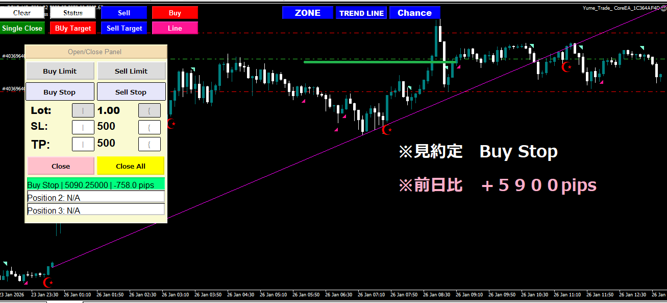 ※以下はゴールド15分足のトレードの様子です。(※2026 01 26月)