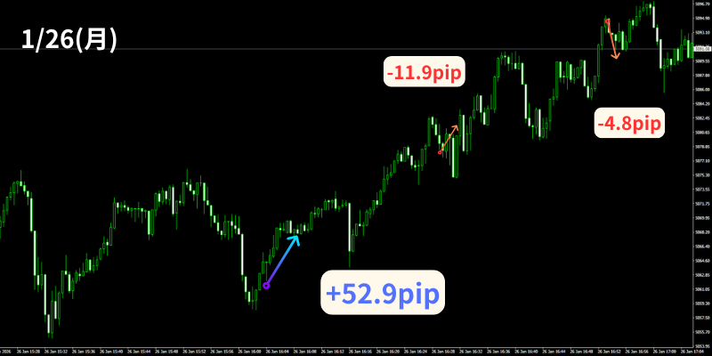 【1月26日】30秒足GOLD無裁量スキャルピング+【第2弾30秒足GOLDオートマチックFX】のトレード結果!