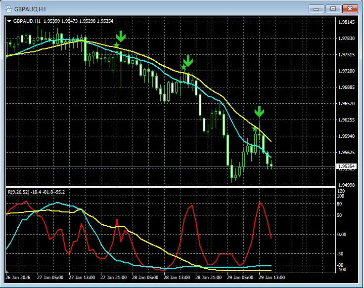 【RCIを極めて移動平均線フィルターで勝つ!!】ポンドオージー GBPAUD 1時間足 mBDSRのサイン