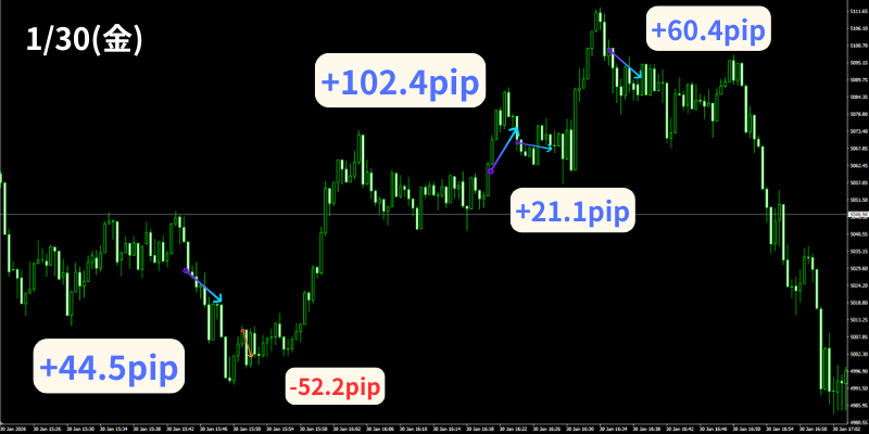 【1月30日】30秒足GOLD無裁量スキャルピング+【第2弾30秒足GOLDオートマチックFX】のトレード結果!
