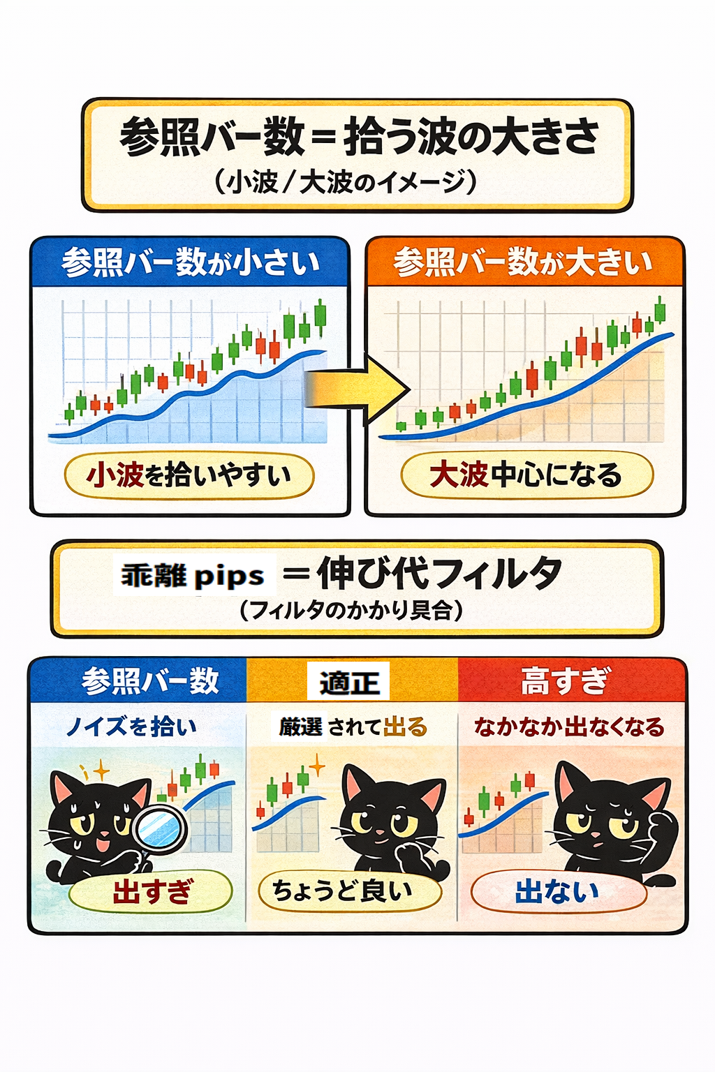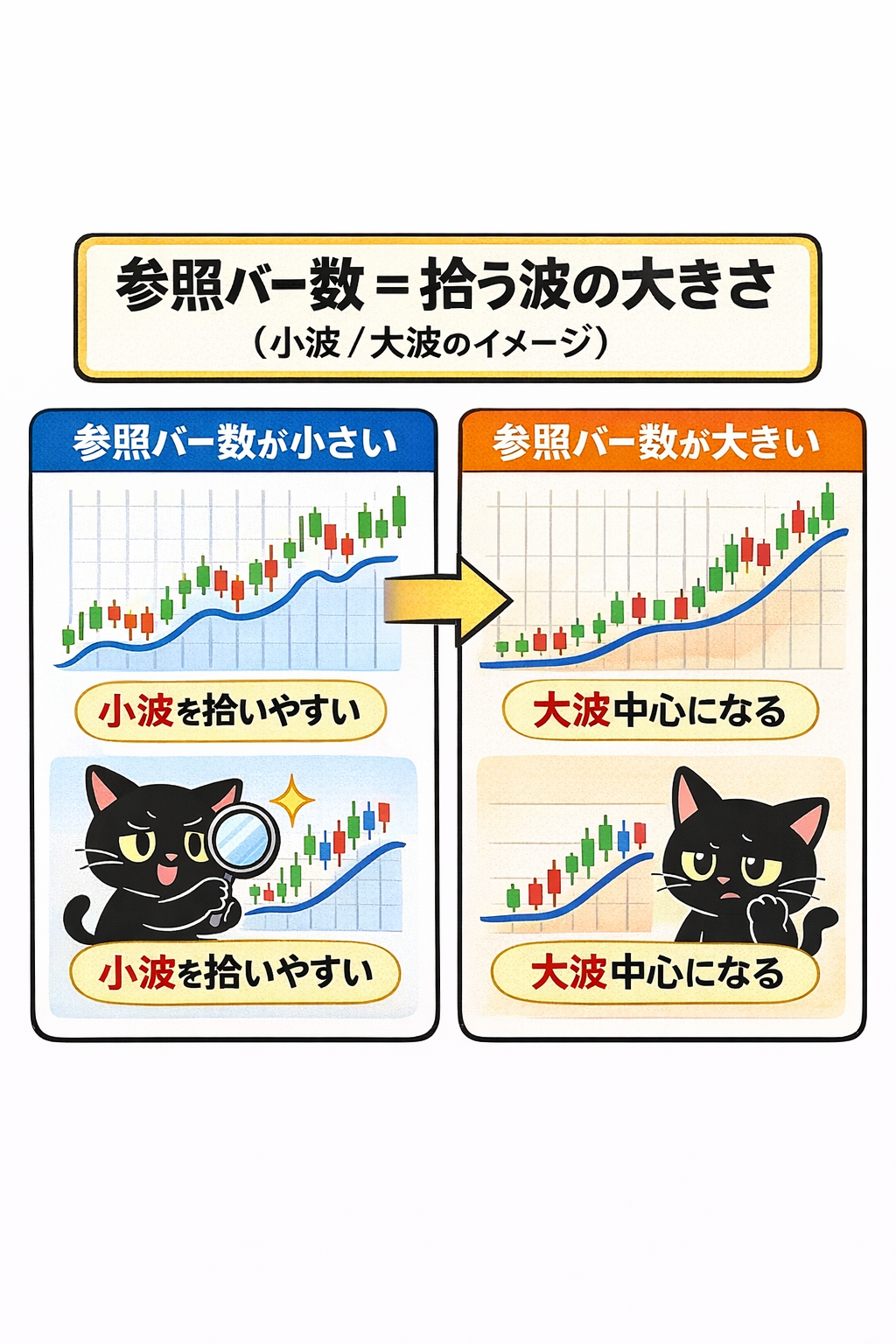 ・参照バー数が大きい → 大波中心になる(回数減りやすい/質が安定しやすい)