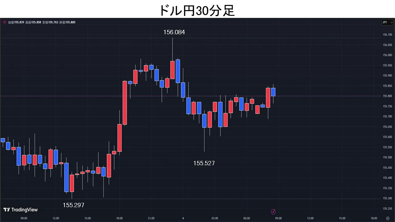 東京時間、ドル円は、日経平均が大幅上昇となるが、前日のドル高調整で155.29円まで下押し。欧州時間、ドル円は、米10年債利回り上昇など受け、一時156.08円まで上昇。その後、ロンドンフィキシングでドル売りのフローが観測されると、ドル円はジリ安。NY時間、「アラビア海で米空母に接近したイランのドローンを米軍が撃墜」との一部報道をきっかけに、米国株や日経平均先物が下げ幅を拡大すると、ドル円は155.52円まで下押し。