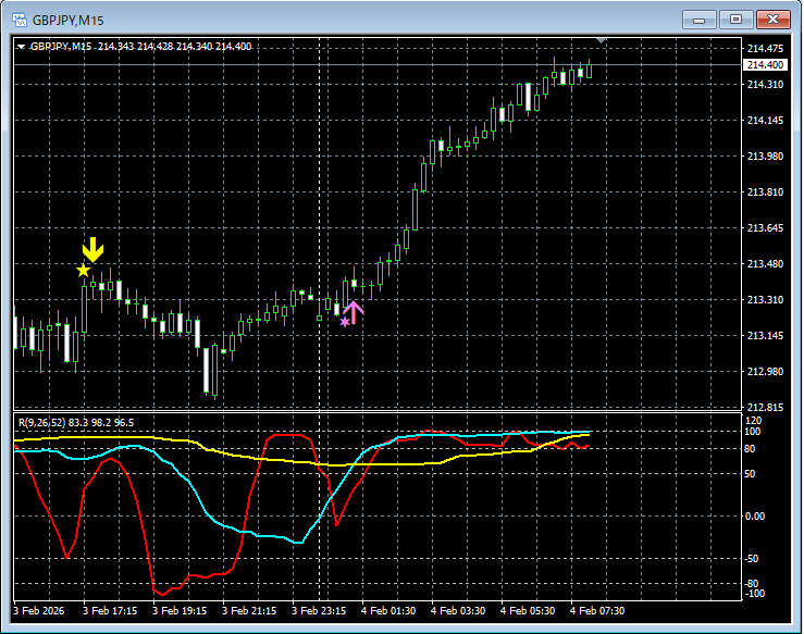 百戦錬磨 mBDSR(RCI2本フィルター)のサインとR1R2S2のサインの両方を活用する(98) ポンド円 GBPJPY 15分足