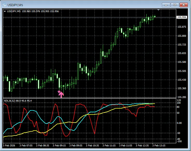 【RCIを極めて勝つ!!】直近の日経平均 JP225 5分足 mBDSRのサイン