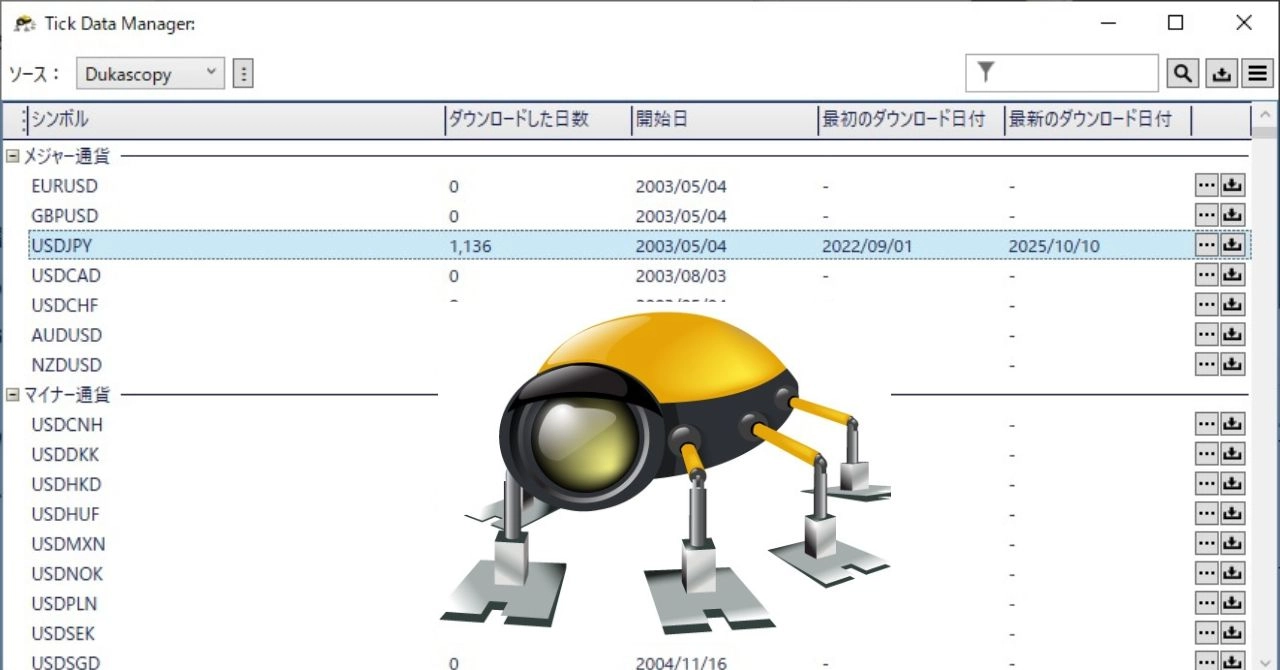 言われた通り、TDSから正規の手順でヒストリカルデータをダウンロードし、改めて「自分で」テストを行うことにしました。