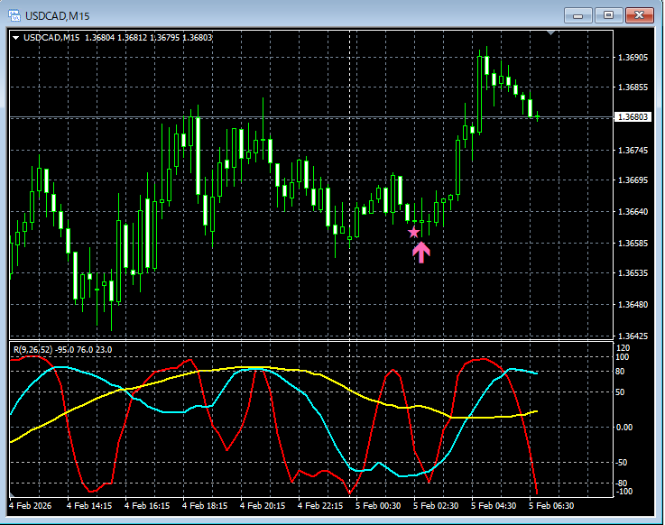 【RCIを極めて勝つ!!】直近のUSDCAD 15分足 mBDSRのサイン
