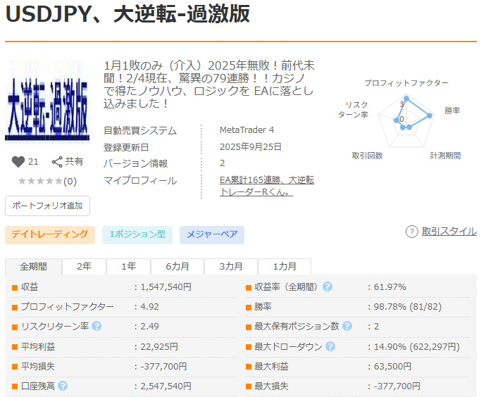 ★★ライブ配信必見★★1月1敗のみ(介入)2025年無敗!!☆☆2/5前代未聞!81戦全勝&72勝&27連勝のEAあります!そして世界初!?次世代手法ライブ配信でEAの方向教えます。