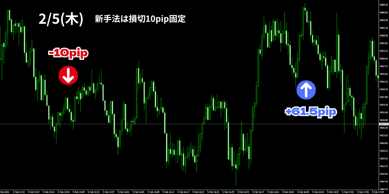 【2月5日】30秒足GOLD無裁量スキャルピング+【第2弾30秒足GOLDオートマチックFX】のトレード結果!