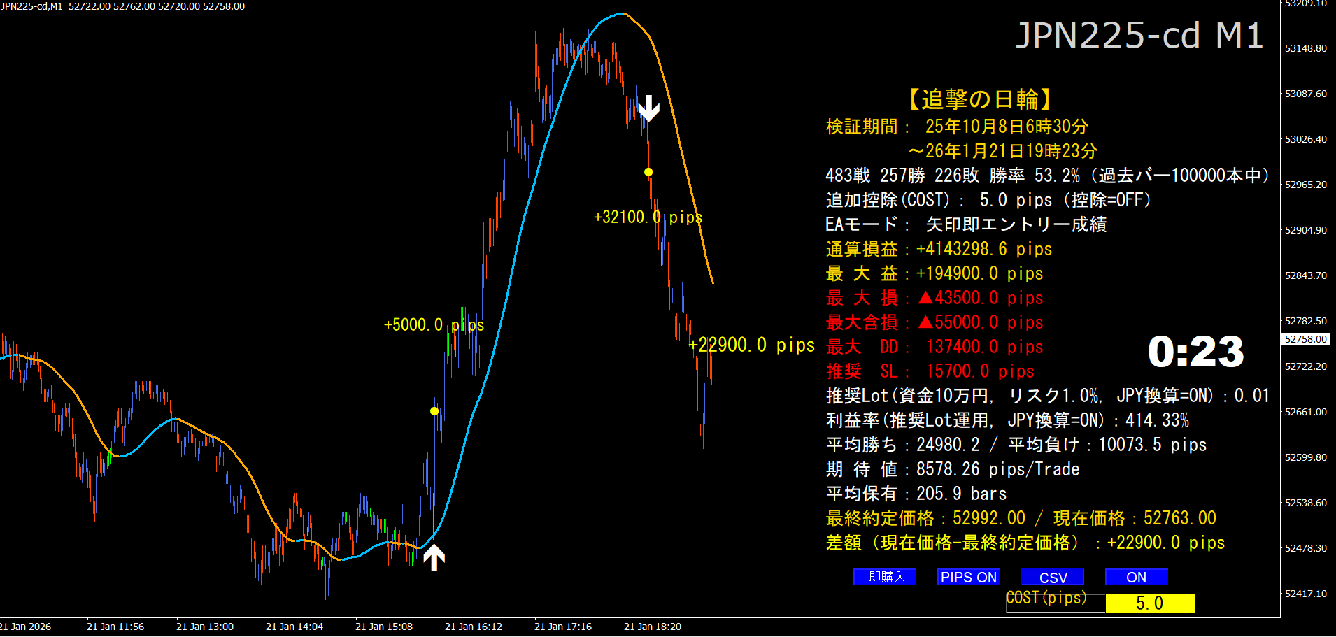 伸びる相場を追撃せよ!【追撃の日輪】★日経225専用★過去とリアル矢印が完全一致★