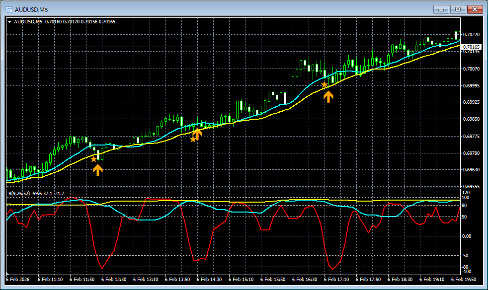 【RCIを極めて移動平均線フィルターで勝つ!!】昨日のAUDUSD 5分足チャートから mBDSRのサイン