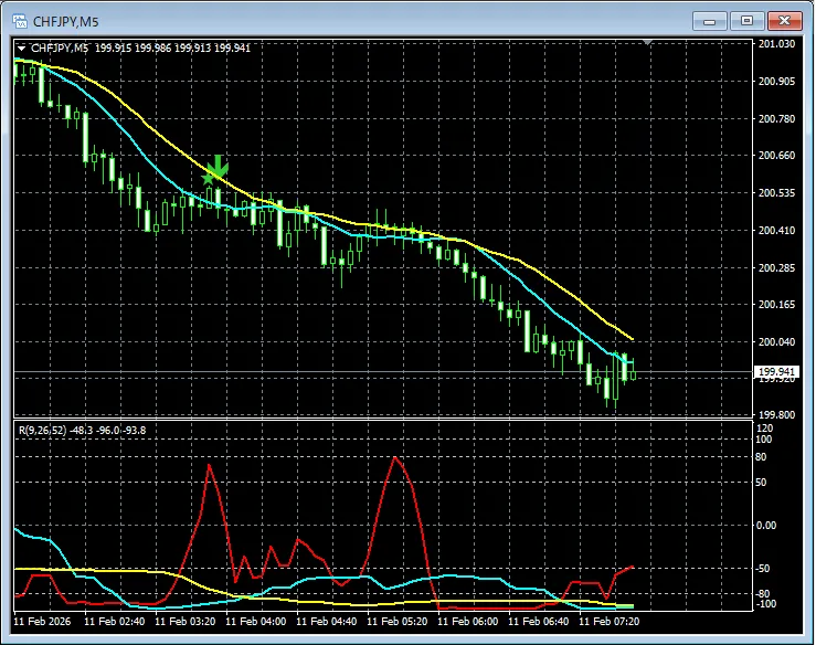 【RCIを極めて移動平均線フィルターで勝つ!!】本日のスイスフラン円 5分足チャートから mBDSRのサイン