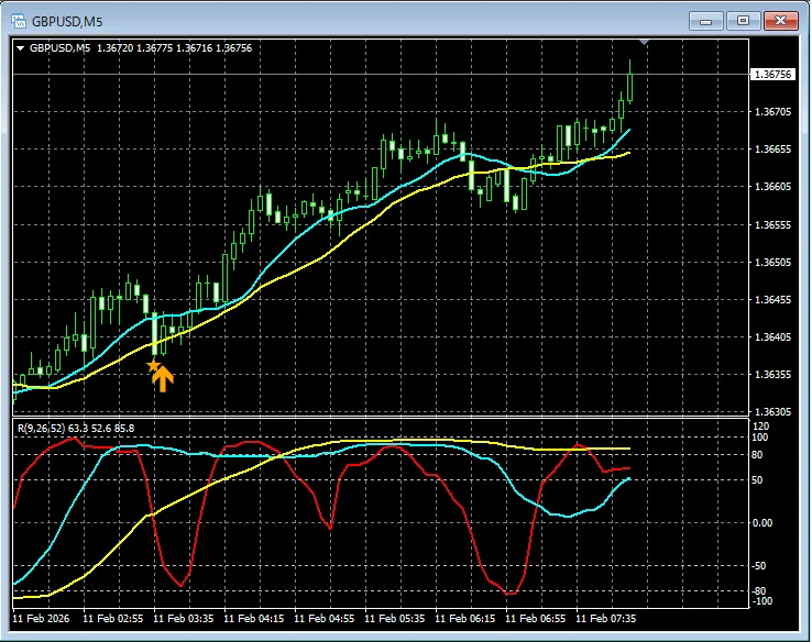 【RCIを極めて移動平均線フィルターで勝つ!!】本日のポンドドル 5分足チャートから mBDSRのサイン