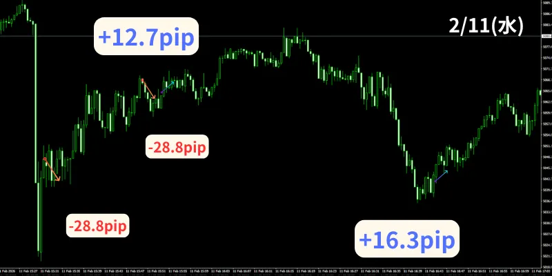 2月11日の「30秒足GOLDオートマチックFX」のトレード結果