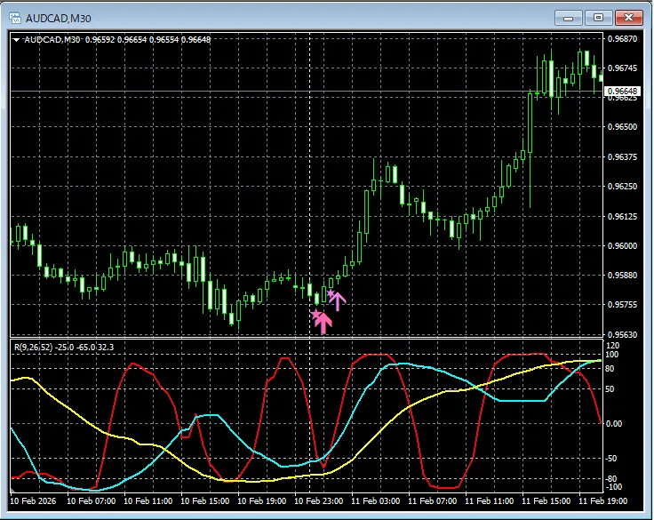 百戦錬磨 mBDSR(RCI2本フィルター)のサインとR1R2S2のサインの両方を活用する(106) オージーカナダ AUDCAD 30分足