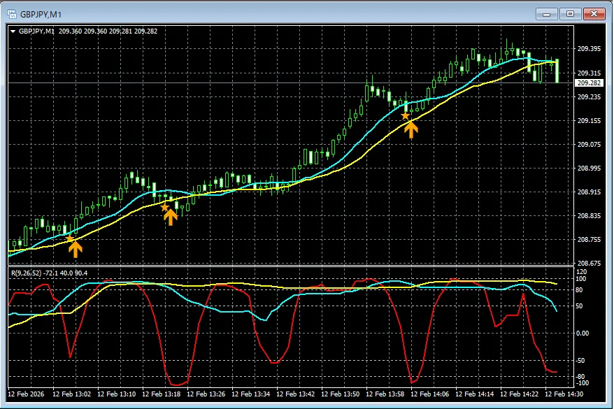 【RCIを極めて移動平均線フィルターで勝つ!!】本日のポンド円 1分足チャートから mBDSRのサイン