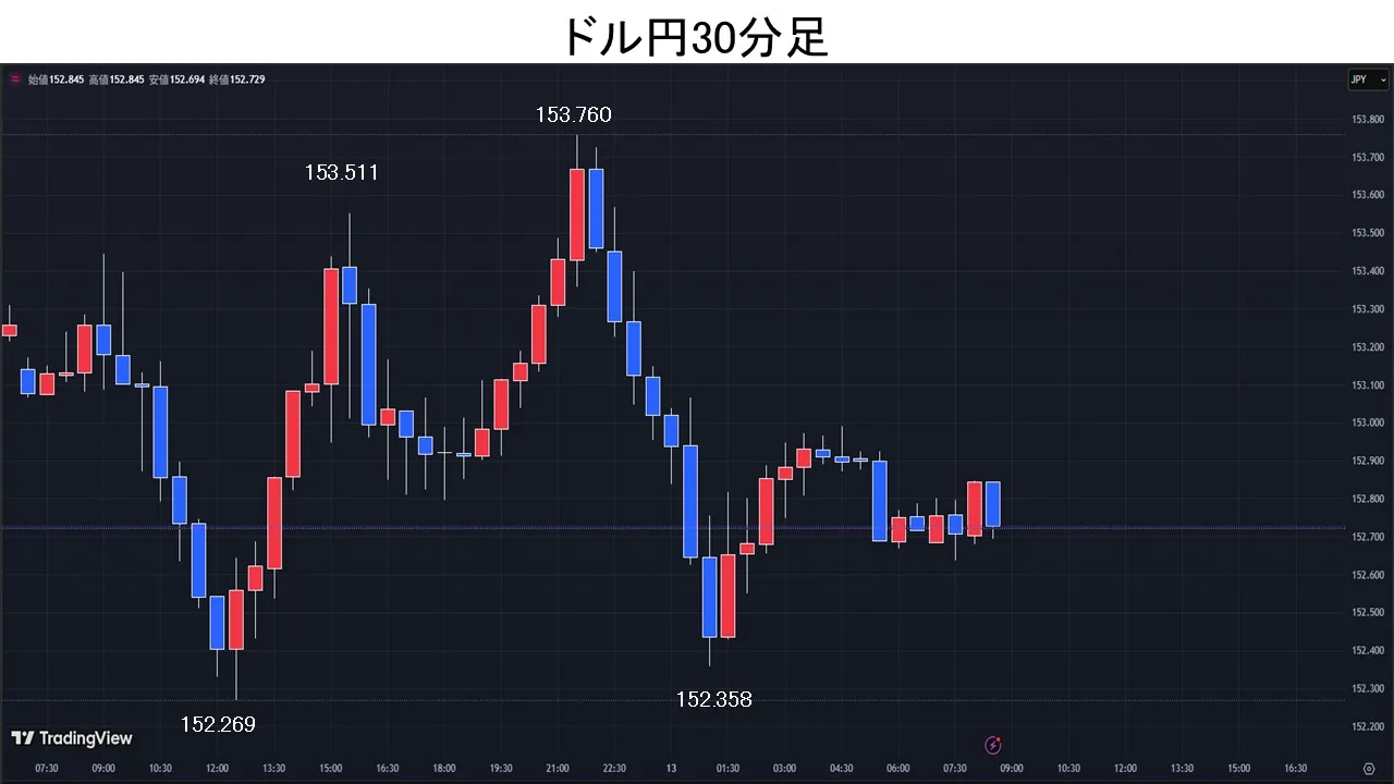 東京時間、本邦長期金利が低下するなど高市トレードの巻き戻しが先行。三村財務官の円安けん制発言も重しとなり、ドル円は昨日安値の152.56円を下抜けて152.26円まで下落。しかし、「片山財務相が高市首相と税額控除や消費税率引き下げについて意見交換」「為替については議論しなかった」との報道が伝わると153.48円まで上昇。欧州時間、「1/23の米国によるレートチェックは日本政府の要請に基づくもの」と時事通信が報じると、ドル円は一時153.51円まで上昇。その後、NYダウ先物や日経平均先物が上昇すると、ドル円は153.76円まで上昇。NY時間、前週分の米新規失業保険申請件数や1月米中古住宅販売件数が予想より弱い内容となると、米国株や日経平均先物が下落し、ドル円は152.35円まで下落。