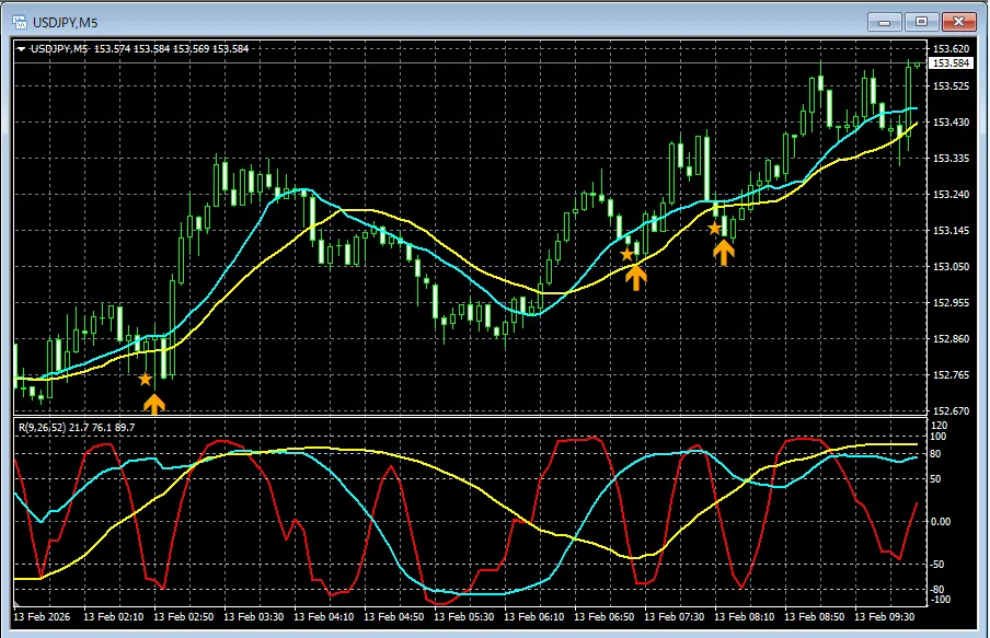 【RCIを極めて移動平均線フィルターで勝つ!!】本日のドル円 5分足チャートから mBDSRのサイン