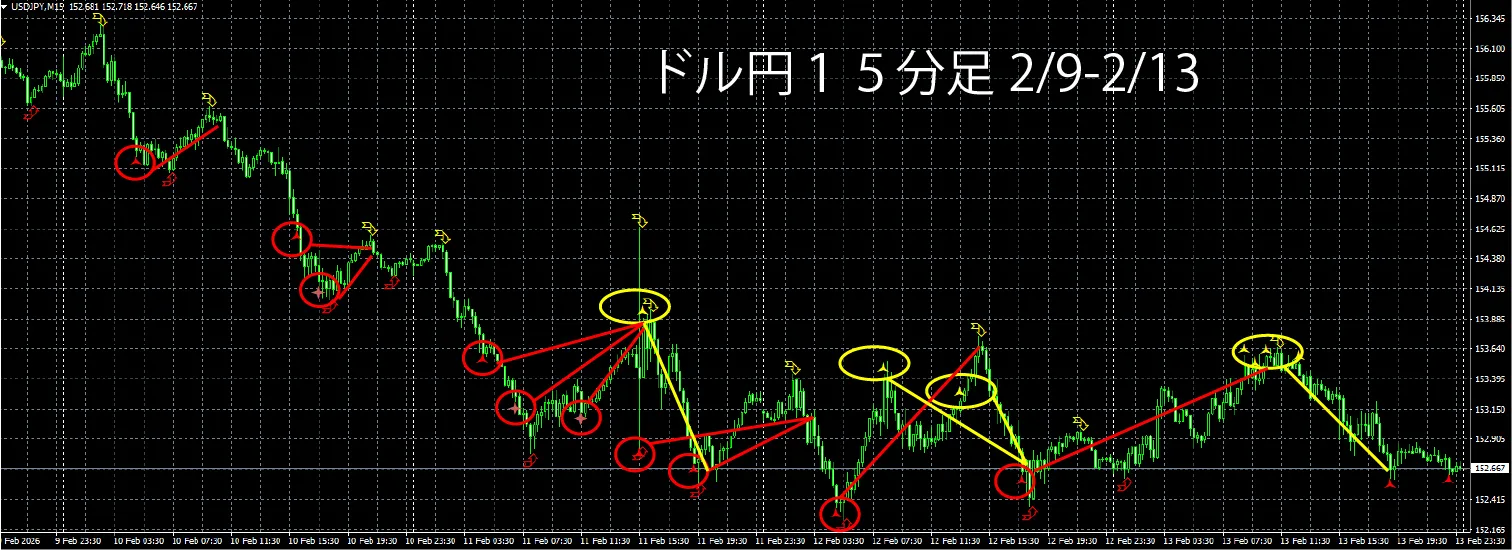 下落方向に動いているため、一時逆行などはありましたが、Syncサイン確定時や、