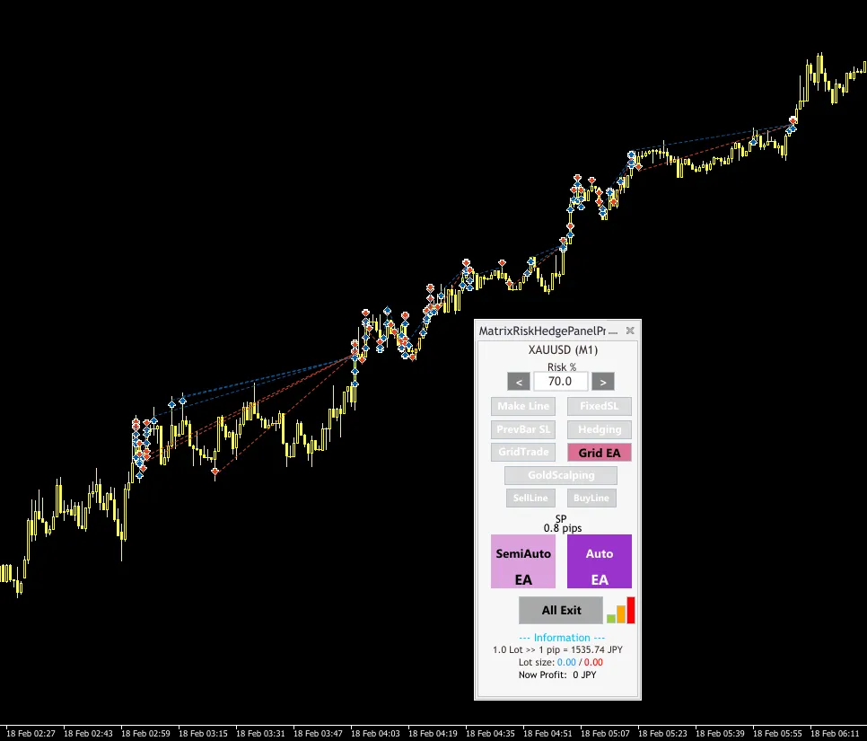 本日はXAUUSDの上昇トレンドという追い風もあり、モード3(UltraSpeed)のグリッドEAが非常にスムーズに機能しました。