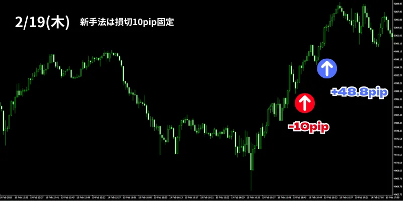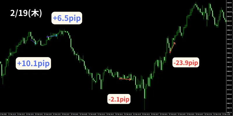 2月19日の「30秒足GOLDオートマチックFX」のトレード結果