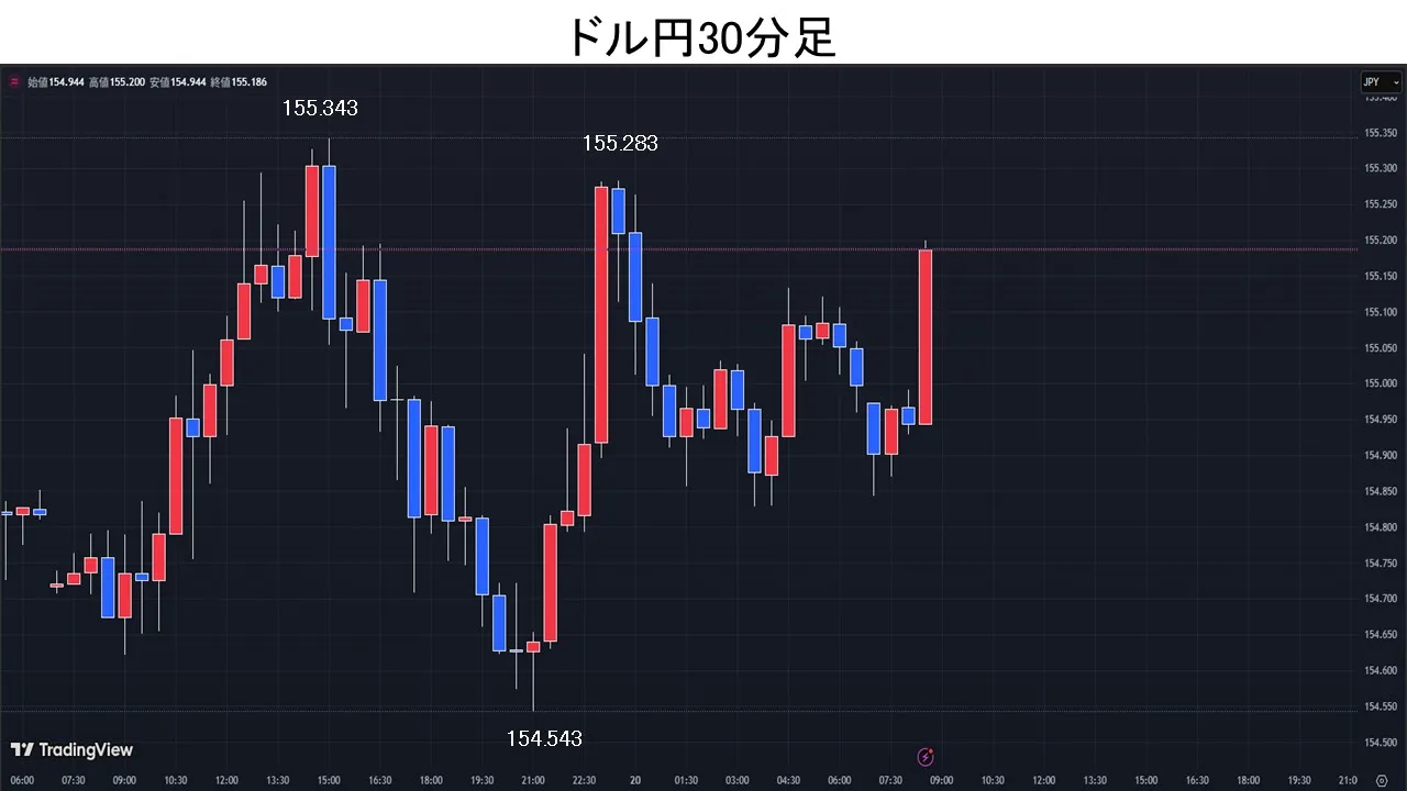ドル円続伸、155円台へ反発。