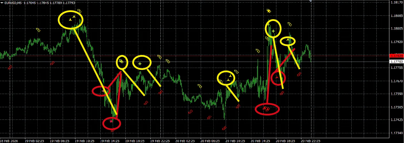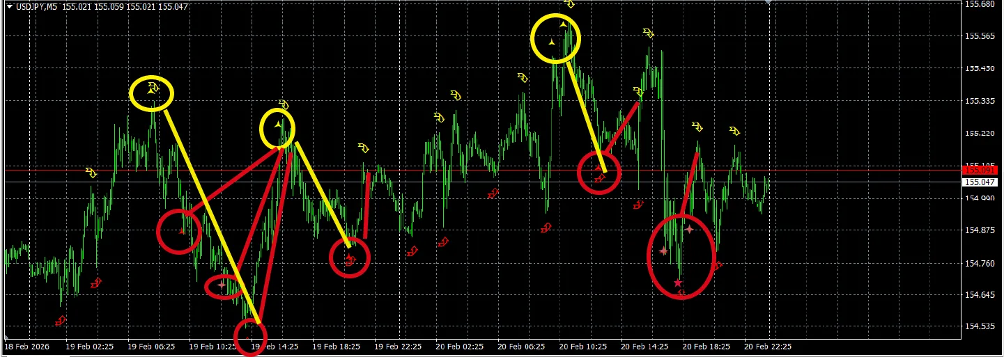 代わりに、ユーロドル5分足、ドル5分足ではサインが面白い位に効いていますwww