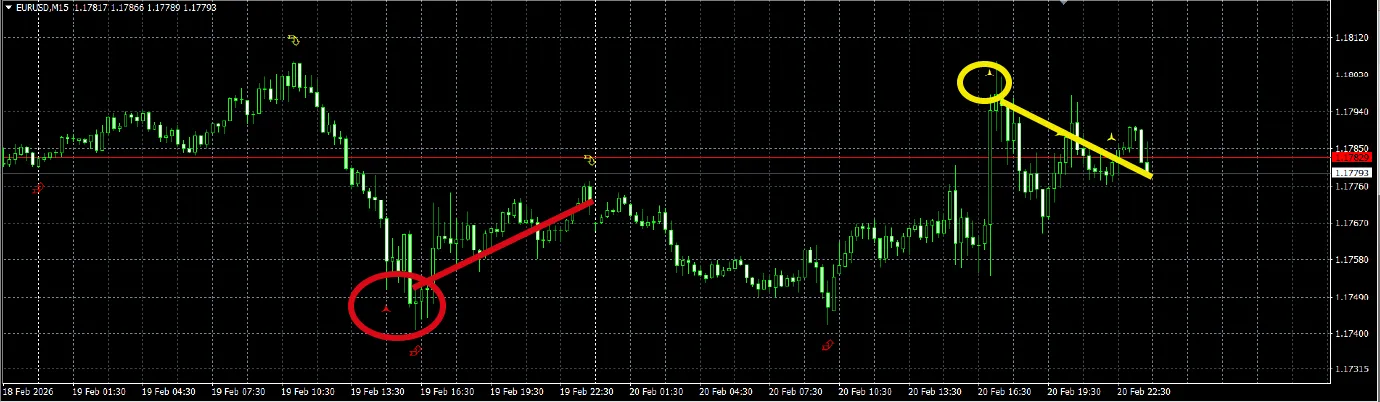 ドル15分足、ユーロドル15分足ではサインほぼなしでした!