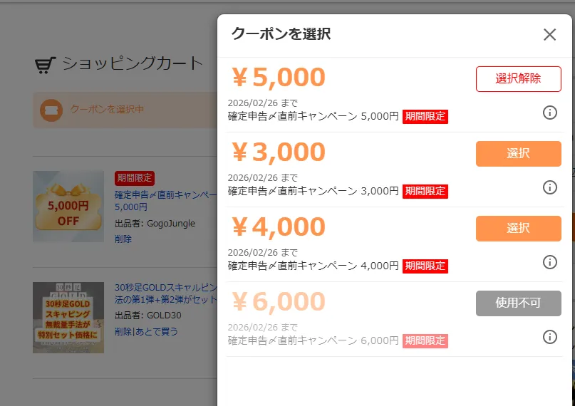 カートに入れると、価格に対して使えるクーポンが自動で選択されます!