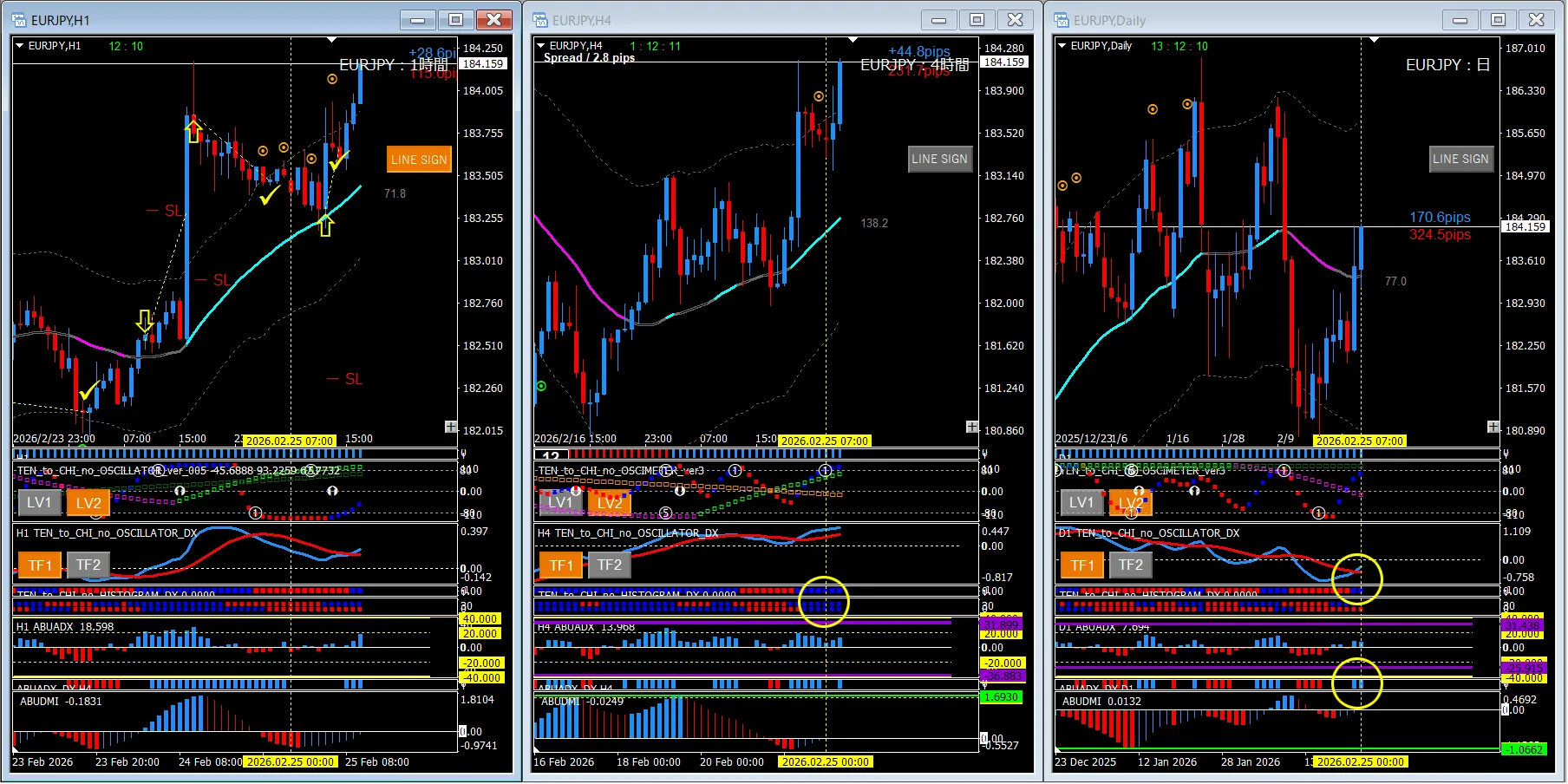【2026年2月25日】天と地シリーズ3種×チャート検証(ユロ円)