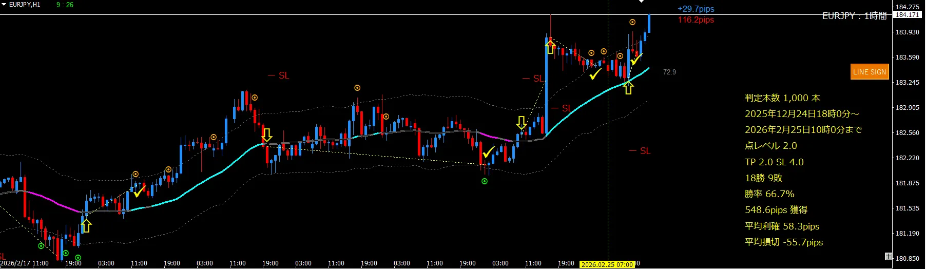 | 1000本 | ラインタッチ(確定) | ヒストグラムDX2(4hours) | 点サイン(2.0) | ABUATR (2.0) |