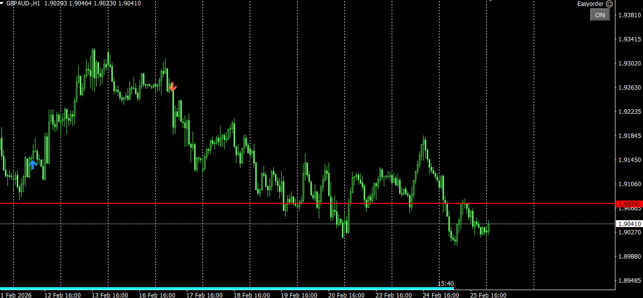 1時間足で1.9075の高値を超えてくれば、上昇トレンド開始。