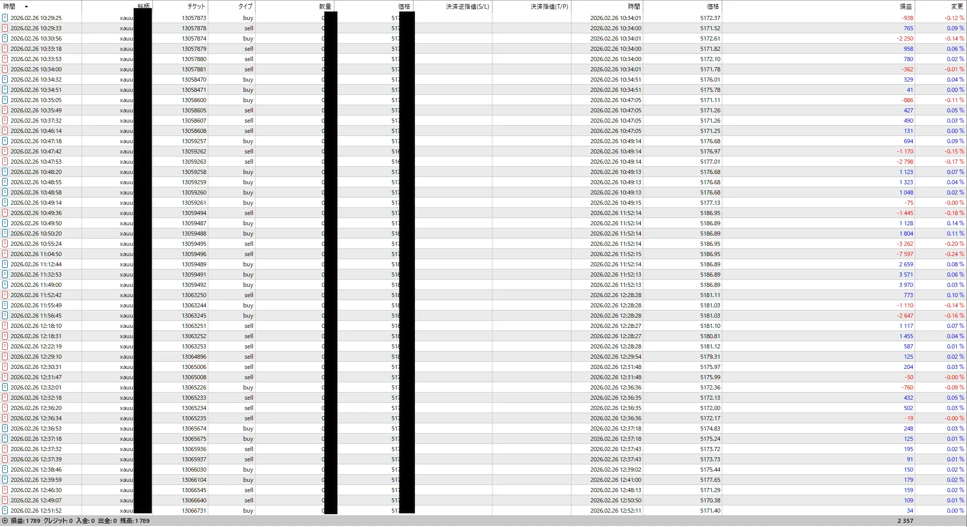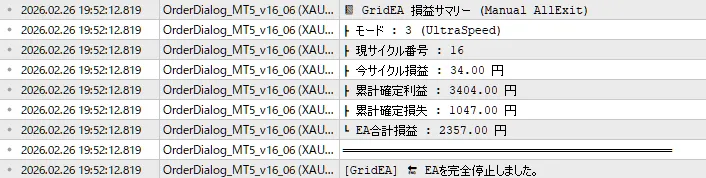 【2026/2/26】FX GridEA運用実績|拡大型レンジの弱点と向き合いながら『+2,357円』を守る