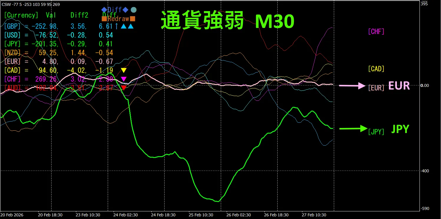 30分足の通貨強弱チャートです。