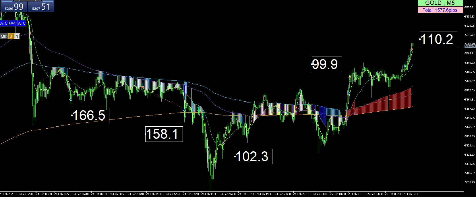 損益:+102.3pips +99.9pips +110.2pips