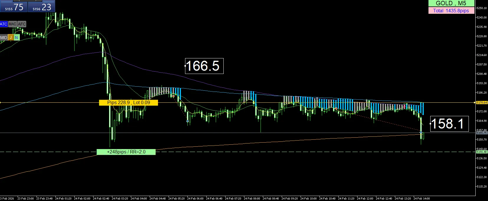 損益:+166.5pips +158.1pips