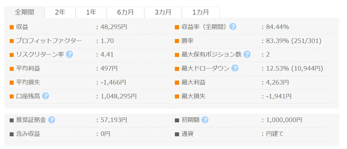 高い勝率とリスク管理のバランスが取れた、長期運用向けのEAであるということです。
