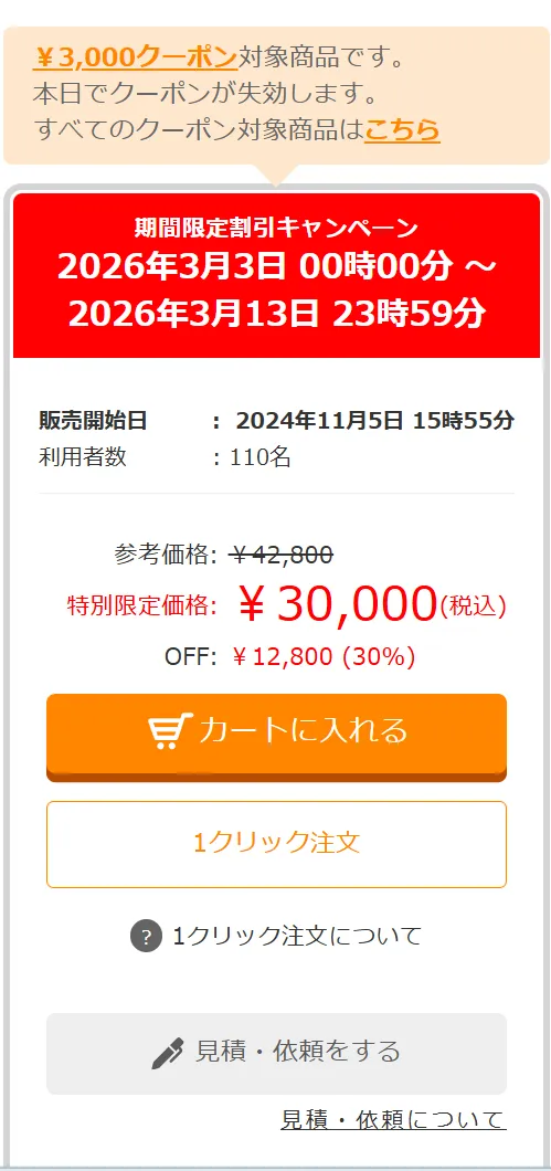 この価格で購入できる機会は限られています。