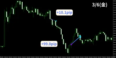 3月6日の「30秒足GOLDオートマチックFX」のトレード結果