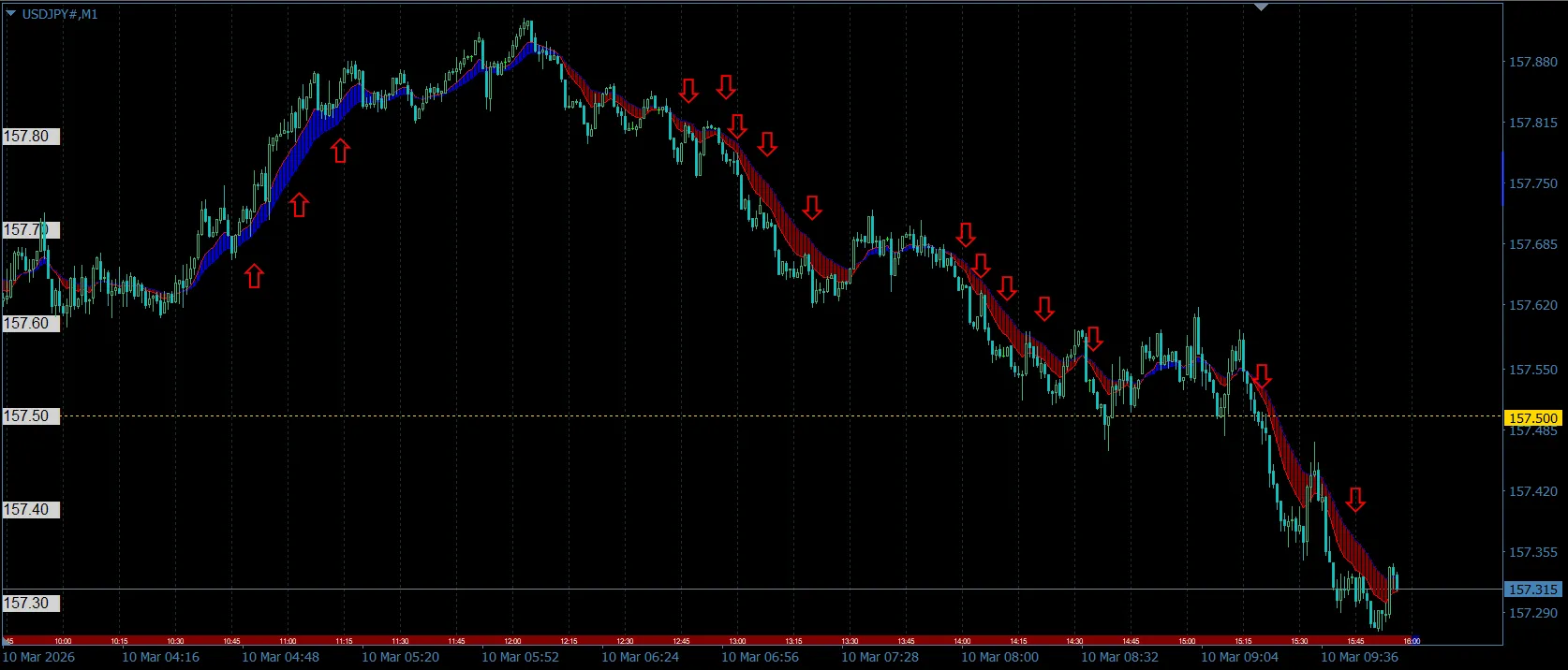 [26.3.10]手法による、ドル円エントリーポイント、午前~夕方+10pips以上