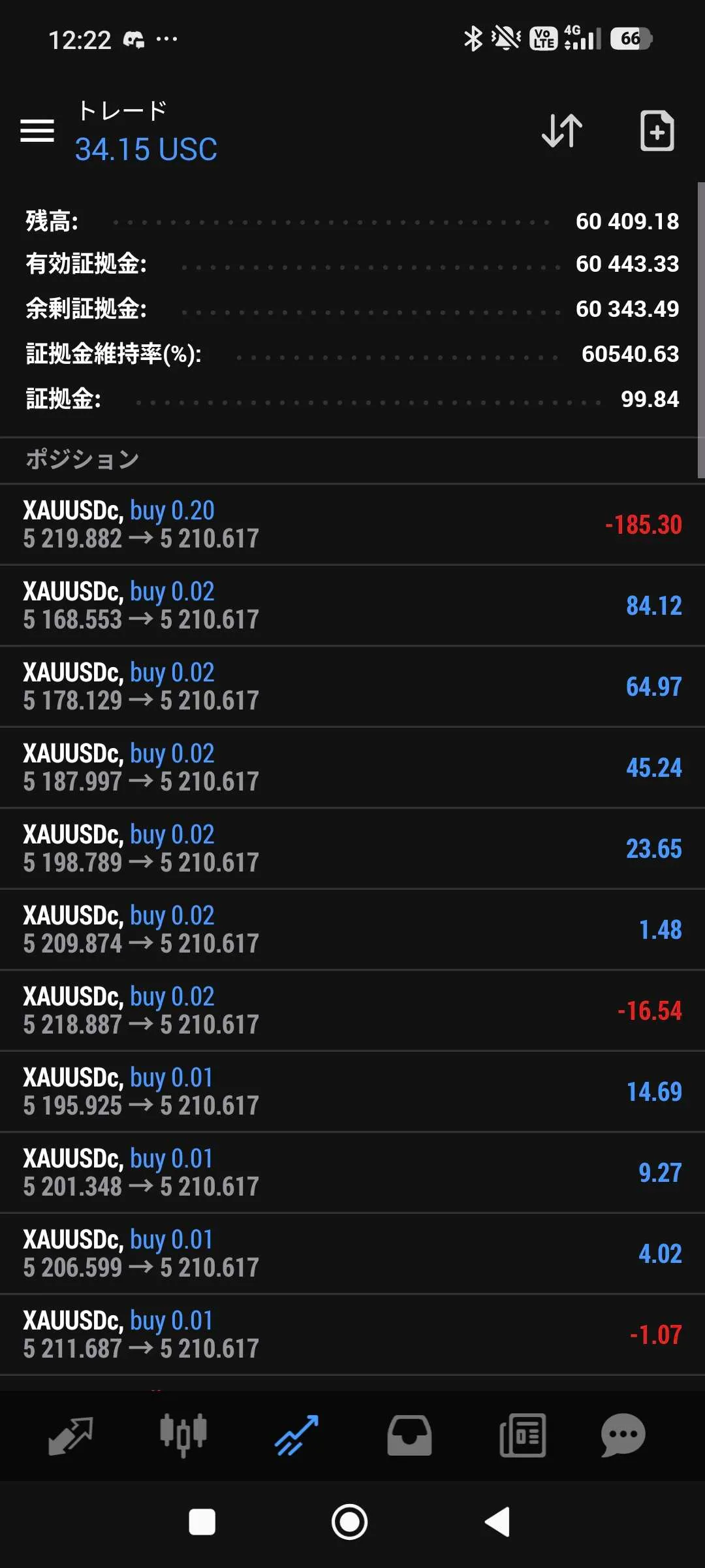 昨日の履歴です。 口座はドルでセント口座です。