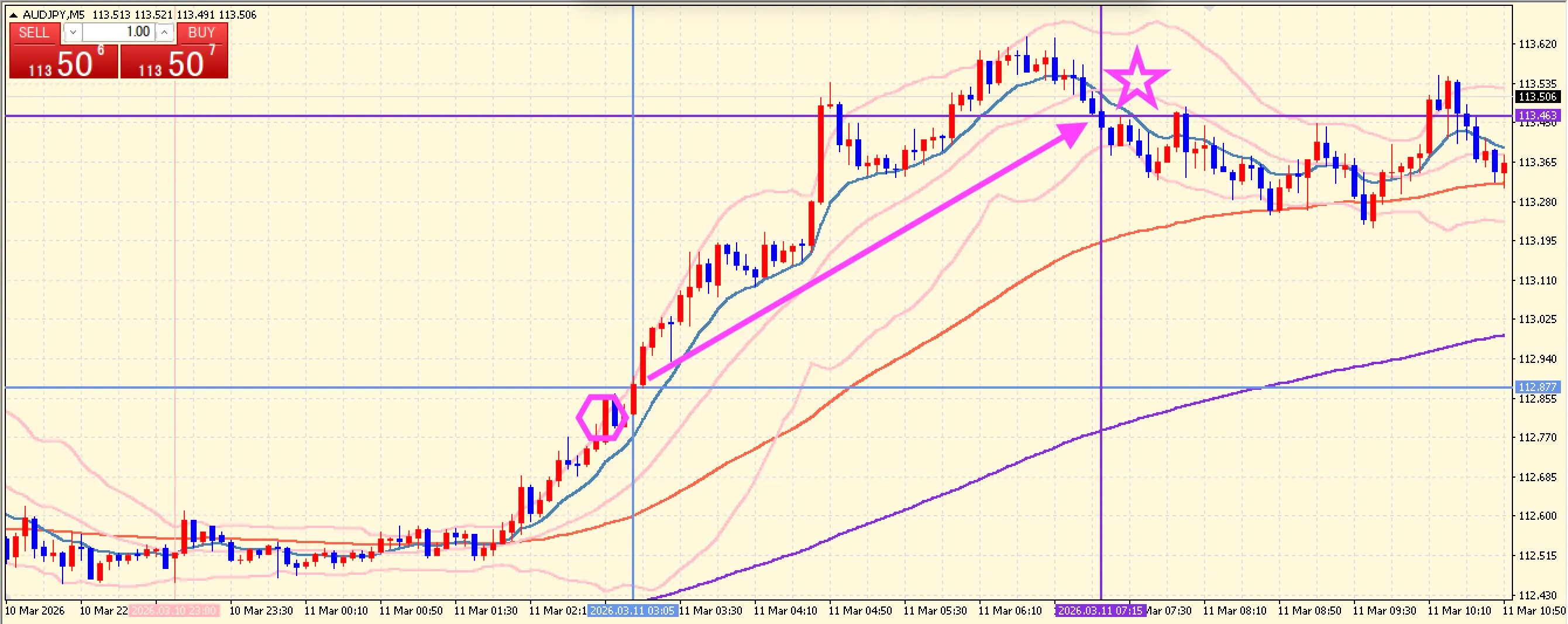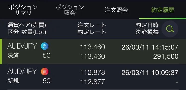 ◆ 2026年3月11日 水曜日【AUD/JPY】【5分足チャート】