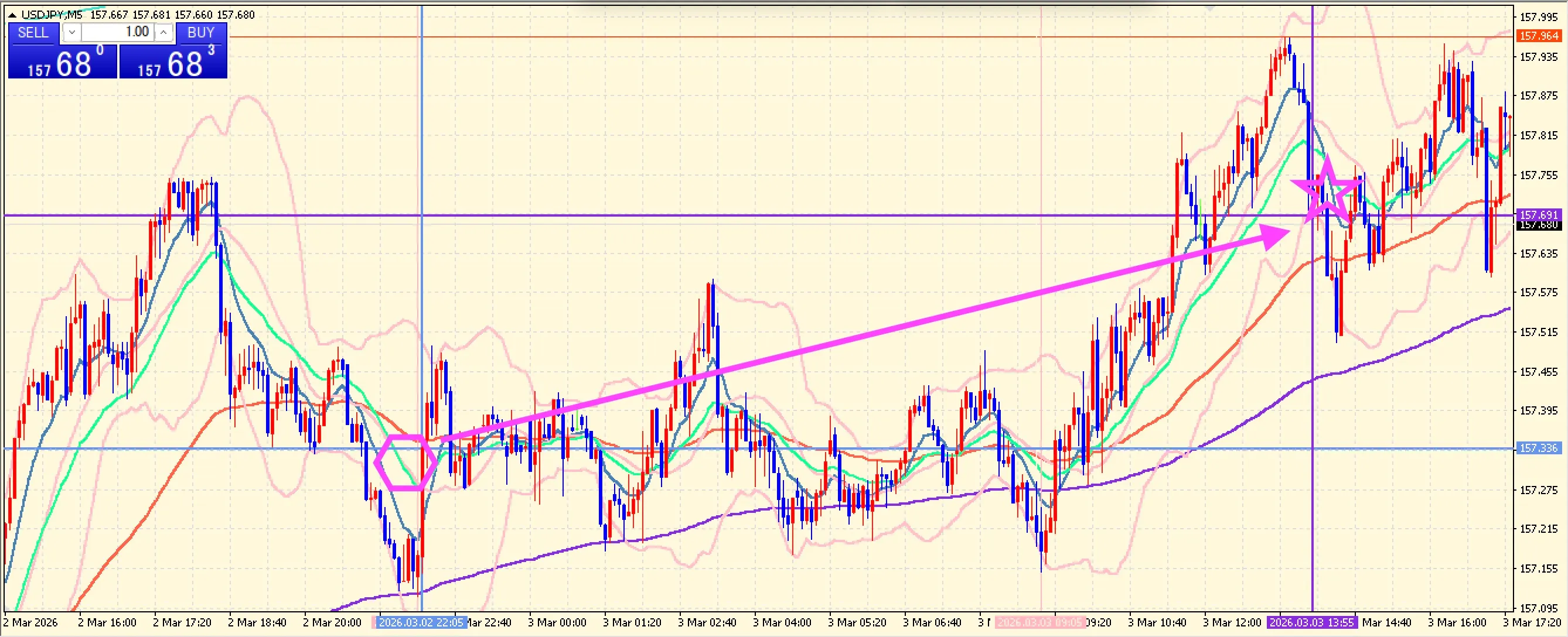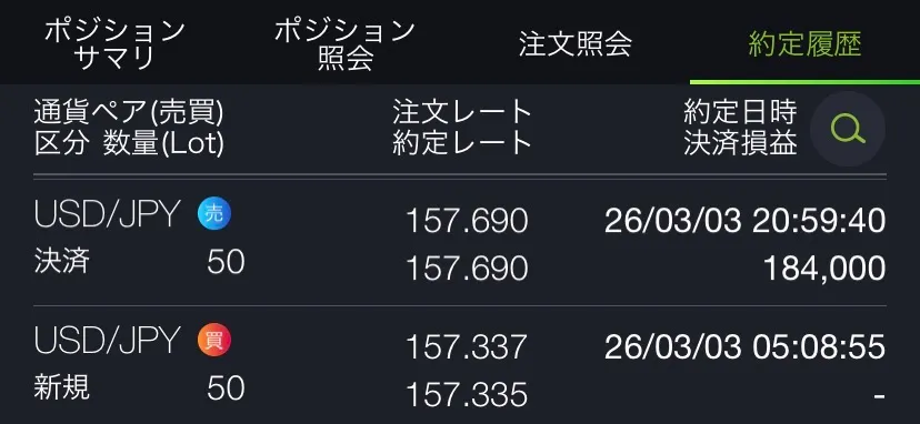 ◆ 2026年3月3日 火曜日【USD/JPY】【5分足チャート】